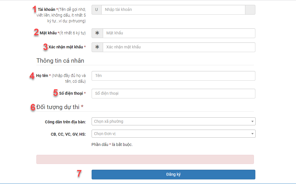 · 7.ĐĂNG KÝ: Người dùng sau khi nhập đầy đủ thông tin, nhấn nút đăng ký, để hoàn thành quy trình tạo tài khoản.