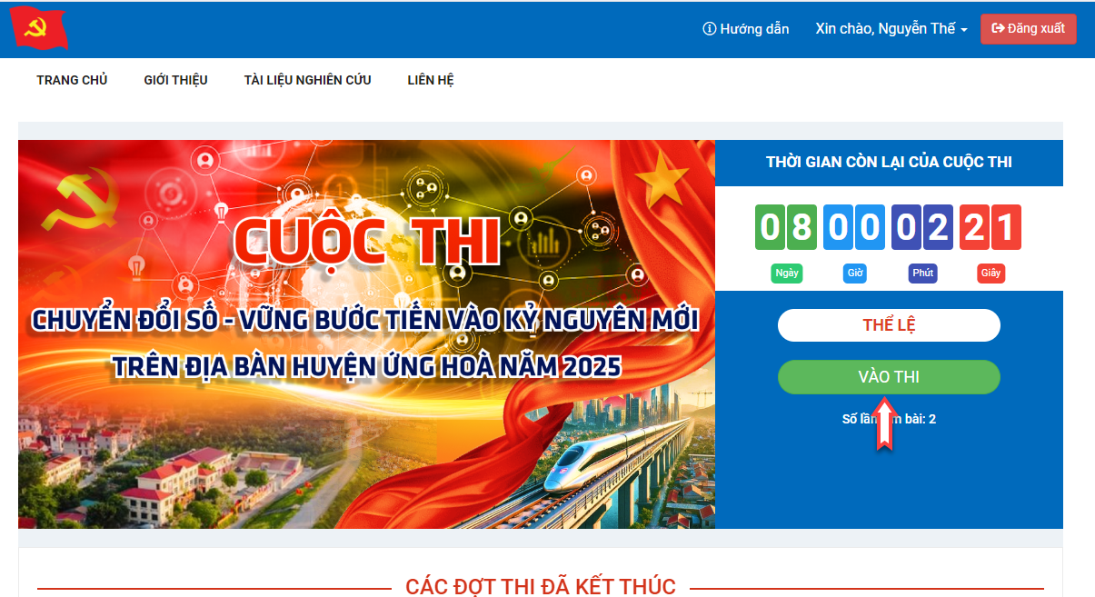 Bước 1: Người dự thi tiến hành các thao tác vào tham gia cuộc thi: